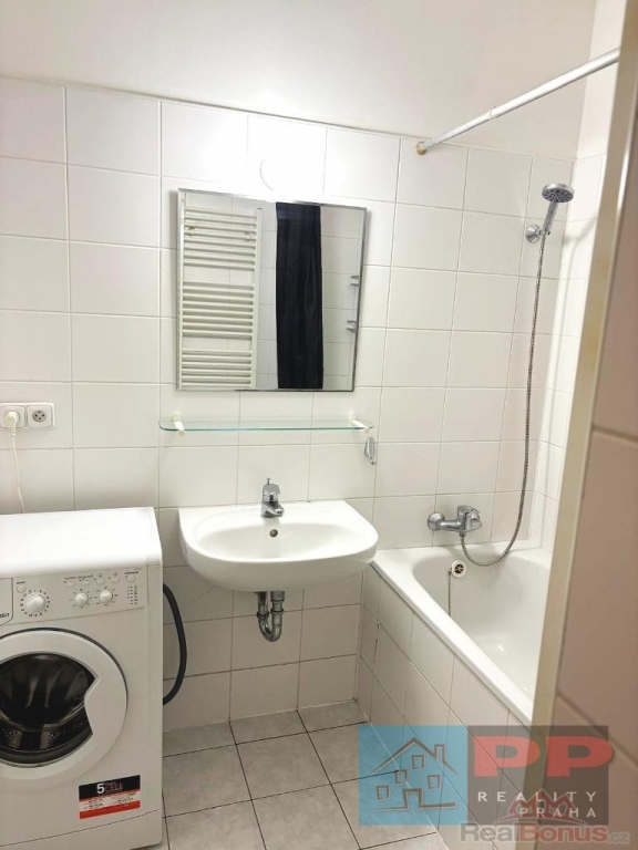 Byt je kompletně zařízen nábytkem a spotřebiči. V koupelně je vana, umyvadlo a pračka. WC je samostatné. Kuchyňská linka je v předsíni. Z ložnice je vstup do koupelny.