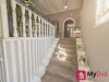 Exteriér domu je stejně působivý jako jeho interiér. Udržovaná zahrada nabízí harmonické spojení zeleně, okrasného jezírka a relaxačních zón. Pergola navazující na kuchyni vybízí k letnímu posezení, zatímco druhá terasa přístupná z obývacího pokoje poskytuje další prostor pro odpočinek. Celý pozemek je citlivě ohraničen zděným plotem, který zajišťuje absolutní soukromí.