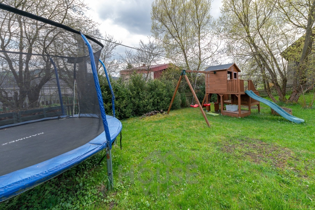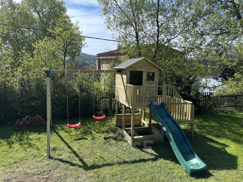 - zahrada se studánkou, dětskou prolézačkou a posezením