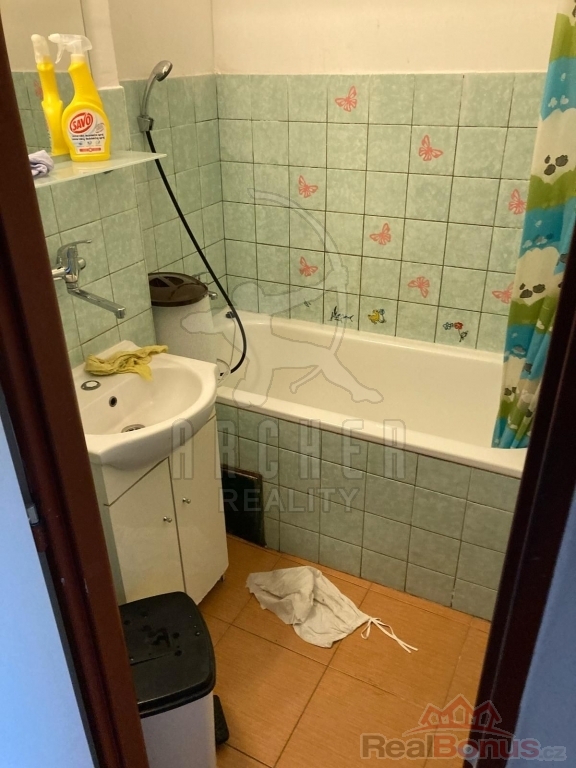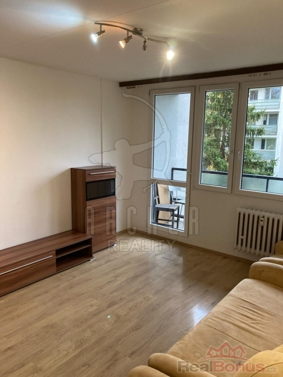 Byt je ve velmi dobrém technickém stavu a nabízí obývací pokoj s kuchyňským koutem, kde je instalována kuchyňská linka s elektrickým sporákem, dále ložnici, zděnou koupelnu, samostatnou toaletu a prostornou lodžii s výhledem do zeleně. K bytu náleží také sklepní kóje. V bytě jsou plastová okna, v obývacím pokoji plovoucí podlaha a v chodbě dlažba.