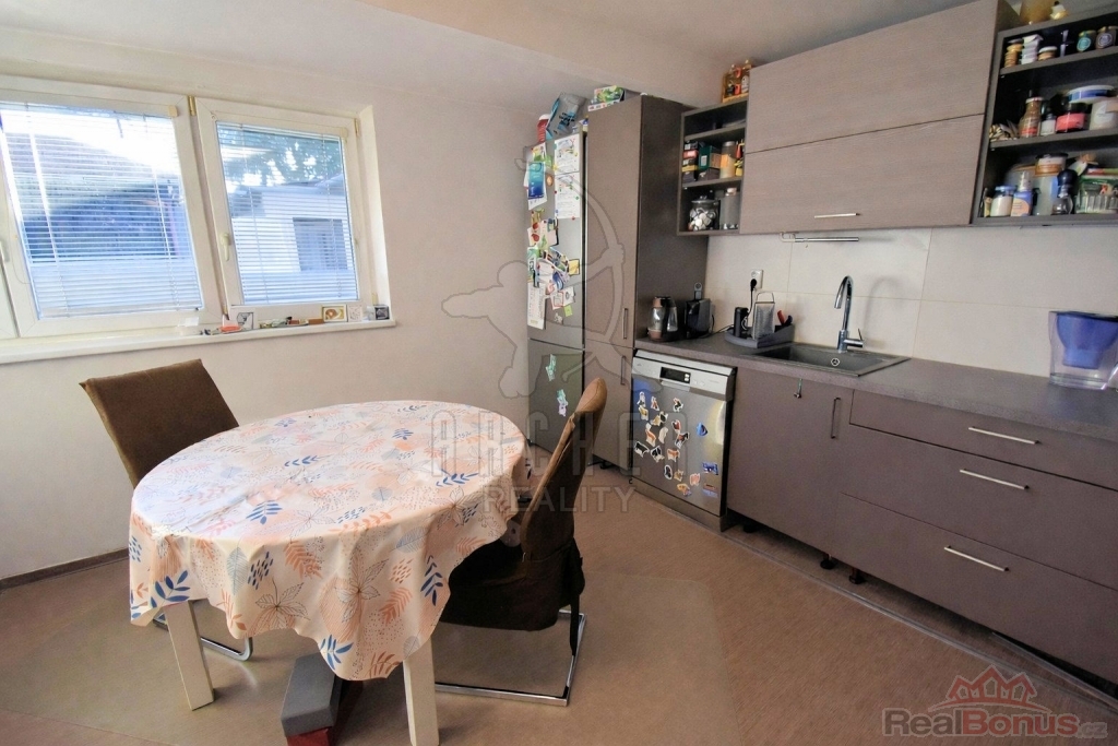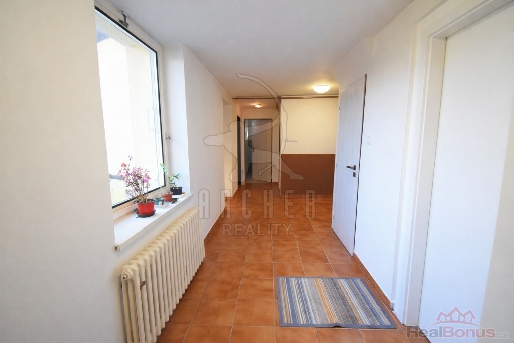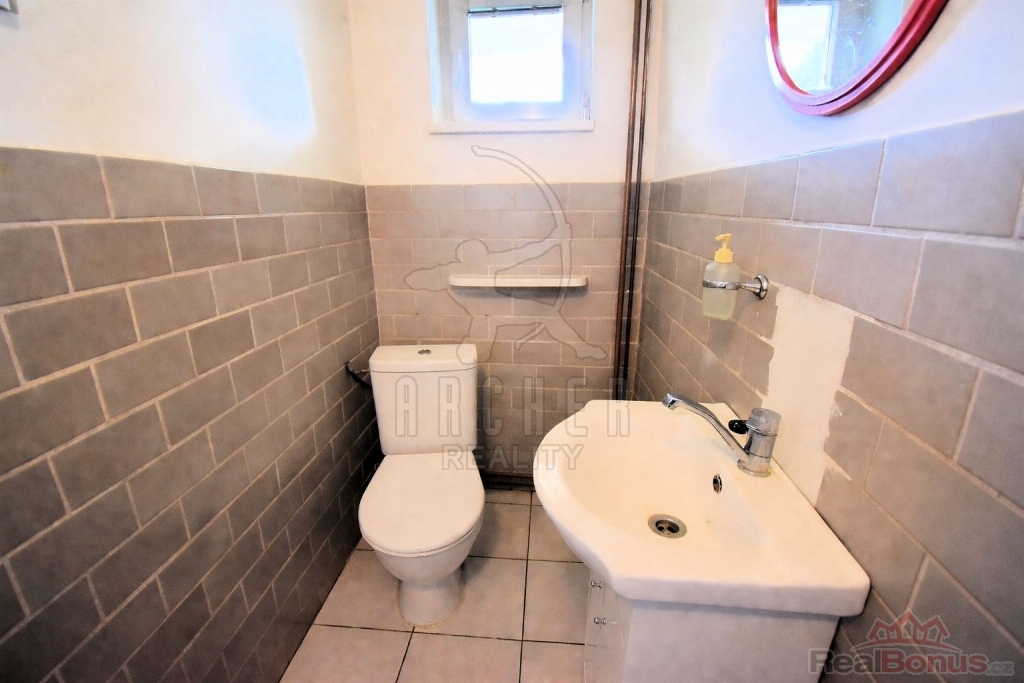 V přízemí prostorná chodba, kuchyň, pokoj, který je nyní neobýván a může sloužit jako obývací pokoj, koupelna s vanou a sprchovým koutem, samostatná toaleta a spižírna.