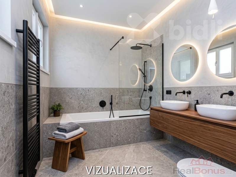 Prezentace kombinuje reálný stav s vizualizacemi, které ukazují, kam až se dá dům posunout a jak by mohla vypadat jeho budoucí podoba. Vytápění je aktuálně řešeno nízkoemisním kotlem na tuhá paliva a kotlem elektrickým. Dům je napojen na obecní vodovod a k dispozici je i vlastní studna s užitkovou vodou. Plyn je v dosahu a je možné jej zavést. Technické zázemí samozřejmě zahrnuje i napojení na veřejnou kanalizaci.