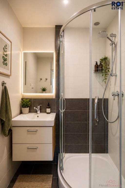 Koupelna a WC: Prakticky řešené zázemí se samostatnou toaletou, což zajišťuje vyšší komfort pro obyvatele bytu.