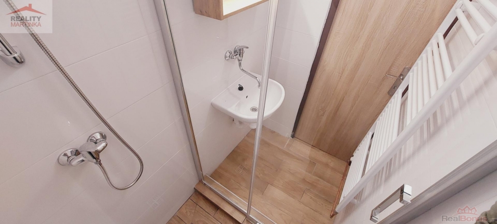 Nabízíme k pronájmu byt po rekonstrukci o dispozici 1+kk ve Valašském Meziříčí na ul. Růžová. Byt s pěkným výhledem do okolí o podlahové ploše 24 m2 je po rekonstrukci se zděným bytovým jádrem. Nachází se v desátém podlaží panelového bytového domu s výtahem, jsou zde nové PVC podlahy, nová koupelna s širokým sprchovým koutem, umyvadlem, skříňkou se zrcadlem s osvětlením, žebříkovým radiátorem, obklady a dlažbou. V kuchyňském koutu je nová kuchyňská linka s místem pro pračku, sklokeramický sporák a digestoř. Okna mají západní orientaci. Cena nájmu 9.000 Kč/měs. + zálohy na služby a energie 2.311 Kč/měs. + elektřina 600 Kč/měs. Kauce 18.000 Kč. Pronajímatel upřednostňuje nájemce nekuřáka. U domu je supermarket, restaurace i autobusové nádraží. Dům je po revitalizaci včetně zateplení obvodového pláště budovy a střechy. K pronájmu byt 1+kk po rekonstrukci ve Valašském Meziříčí.