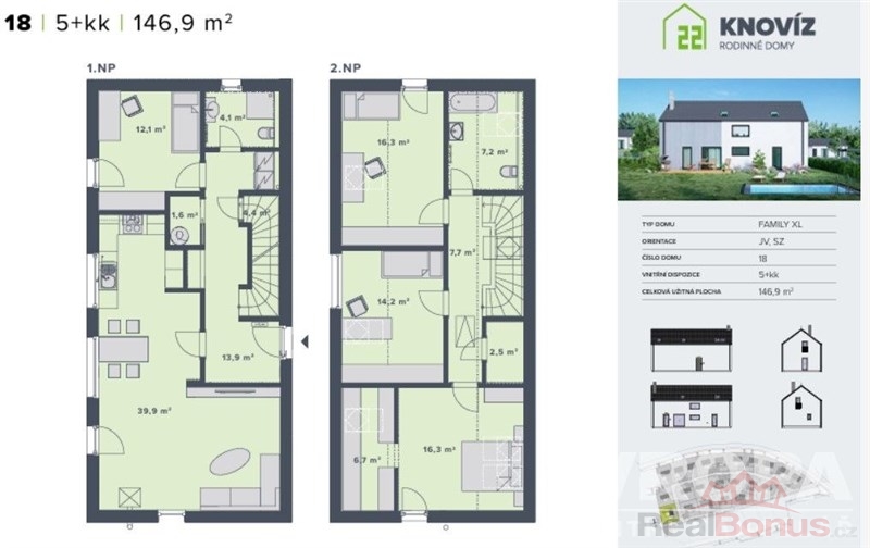 V exkluzivní nabídce POSLEDNÍ 3 DOMY v Knovízi ulice Na Hrudnémprojekt je jinak rozprodán! Patrový rodinný dům má dispozici 5+kk s užitnou vnitřní plochou 147 m2, je postaven jako nízkoenergetický (PENB B) a ve vysokém standardu moderního bydlení. K pozemku patří prostorná zahrada (pozemek 803 m2).  Výhodou tohoto domu je dostatek vnitřní užitné plochy, která vznikla rozdělením mezi přízemí a patro domu. V případě potřeby lze upravit na 2 bytové jednotky. V každém z pater je koupelna a WC. Dále viz. půdorysy pater.
