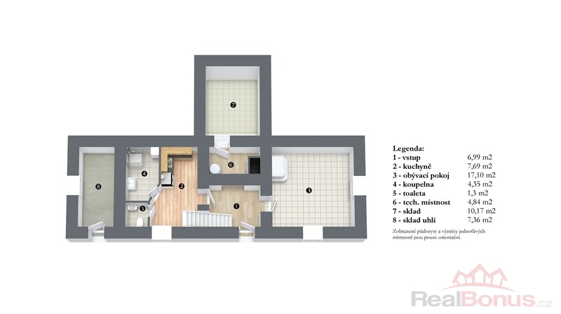 Kamenný suterén (10 m) s klenutým stropem ideální jako vinný sklípek