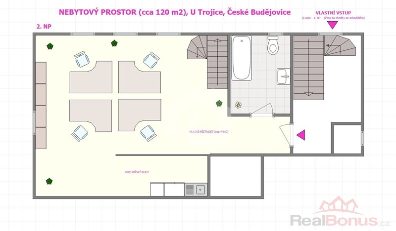 NEBYTOVÉ PROSTORY v Českých Budějovicích na PRAŽSKÉM PŘEDMĚSTÍ s celkovou plochou 120 m2.