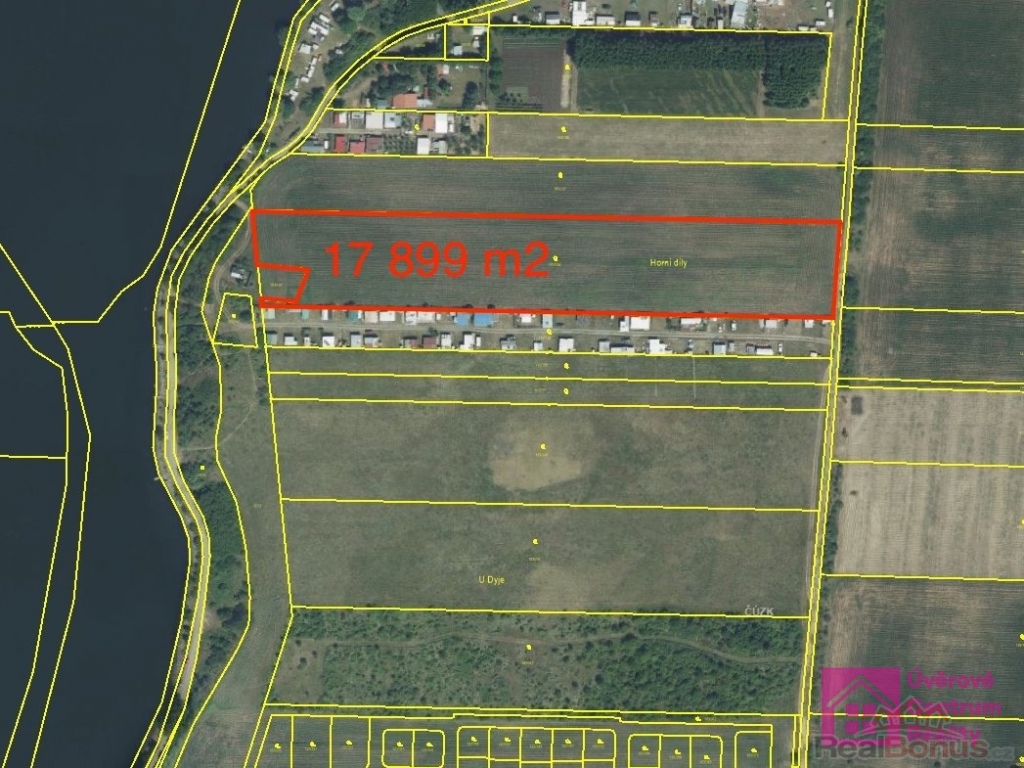 Dále je možnost koupě dalšího stavebního pozemku (č. 183/138) o ploše 17 899 m2 s rozměry cca 55 x 335 m, který má stejné územně plánovací parametry.