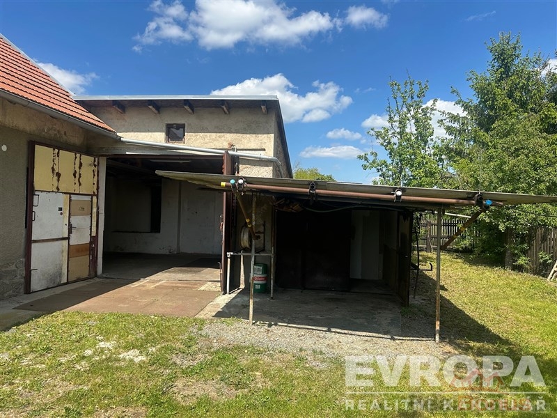 Hlavní garáž (60 m) montážní jáma, vysoká vrata (2,9 × 3,2 m), ideální pro dílnu či podnikání (např. autoservis)