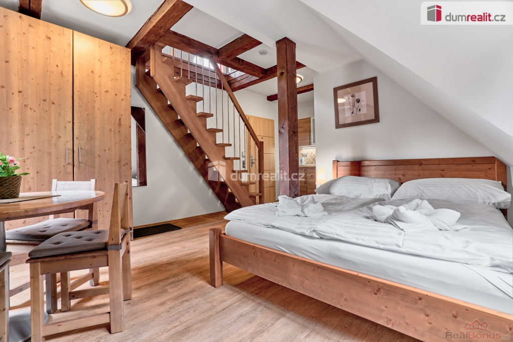 cena je včetně právních služeb a provize RK, Exkluzivně nabízíme k prodeji luxusní mezonetový apartmán v rezidenci Horská zahrada v Krušných horách, pouhých 100 metrů od lanovky skiareálu Plešivec s vlastním parkovacím místem v ceně. Tento moderně zařízený byt o dispozici 2+kk se nachází v 1. patře hlavní budovy a je po kompletní rekonstrukci. Nabízí pro nové vlastníky plochu 41,2 m a veškeré komfortní vybavení včetně centrálního plynového vytápění a internetového připojení. Nehledejte dál, tady najdete svůj nový domov v horském ráji! Zde si nepořizujete pouze apartmán, ale soukromý kousek hor - pořizujete si horskou zahradu na slunečním jižním svahu pro váš klid a relaxaci. Součástí koupě apartmánu je i podíl na pozemku (zdarma) v uzavřeném areálu o velikosti 3800 m, s krytým posezením a grilem. Dále zde najdete lyžárnu, kolárnu, dětské hřiště, parkoviště a mnohé další. Možností je i koupě dalších volných apartmánů v hlavní budově různých dispozic, či samostatnou chatu. Pro více informací nás neváhejte kontaktovat nebo navštivte web nemovitosti. Ev. číslo: 651271. Energetický štítek: C (236 kWh/m2/rok).