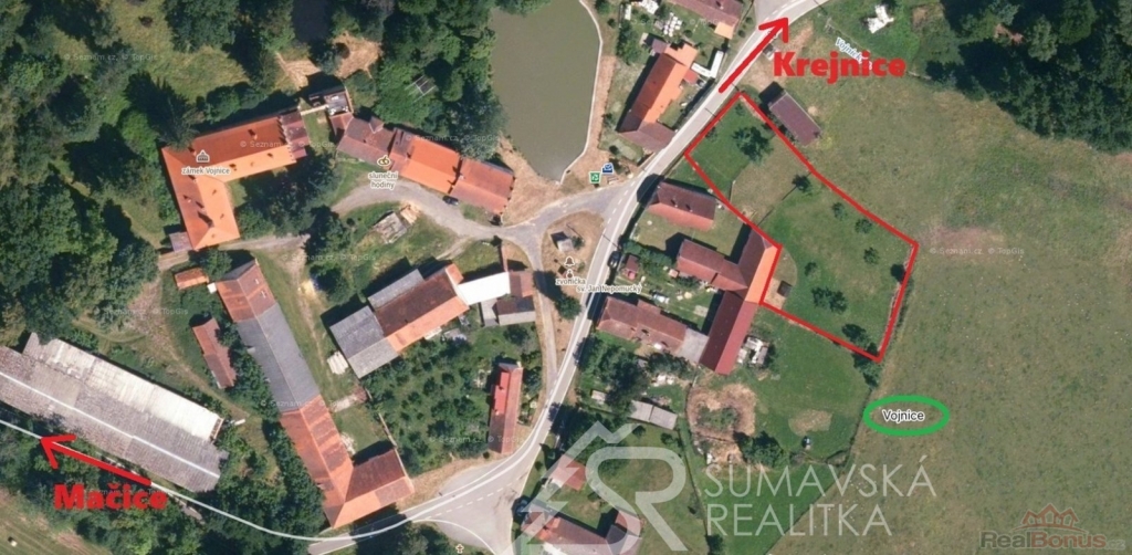 Lokalita: malá vesnička Vojnice v malebné krajině pod Šumavou, ležící v okrese Strakonice (vzdálené 17 km) náleží pod střediskovou obec Volenice. V celkem 34 obydlí je zde hlášeno pouze 14 obyvatel. Na dohled se nachází i nejrozsáhlejší hrad Rabí a stále více oblíbenější šumavské horské středisko Kašperské Hory je vzdálené pouze 18 km. Nad vesničkou stojí a ochraňuje ji nově opravený a bílou barvou svítící kostel Navštívení Panny Marie se zachovalým letopočtem vzniku 1687 (viz fotogalerie). Snad největší zajímavostí a tak trochu záhadou jsou tři dochované barokní zámky ležící v sousedních vesnicích i v samotných Vojnicích. Jejich stavebně technický stav je však přímo úměrný situacím popsaných spisovatelem Evženem Bočkem v knihách o Poslední aristokratce. Ve východně ležících Mačicích se jedná o zámek již ze 14.století, v západně sousedící vesnici Tažovice je barokní zámek s francouzskou zahradou ve stylu Versailles. Ve Vojnicích se z bývalé tvrze barokní přestavbou ze 17.století dochoval zámek, jehož majitelem byl v 19.století i ředitel Škodových závodů v Plzni pan František Wellner. To jistě svědčí o oblibě tohoto kraje. Atraktivní je i pro příznivce motorismu startuje zde i etapa rychlostní zkoušky Rallye Šumava: Vojnice Hoslovice. Časté zatáčky, mírná stoupání i prudká klesání vyhovuje i cyklistům, kteří si zde užívají jízdu na velmi kvalitním asfaltu, kterým je Jihočeský kraj známý.