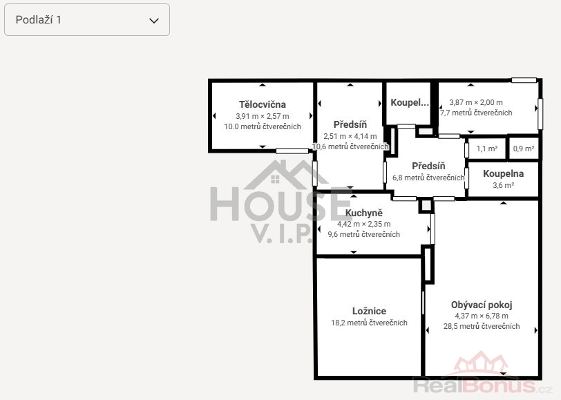 V prvním podlaží se nachází útulný byt 2+1 (75 m2) se dvěma koupelnami, prosklenou terasou (24 m2), dvěma spižírnami a komorou. Byt byl v roce 2014 vybaven rekuperační jednotkou pro celoroční komfortní klima. Ve druhém patře se nachází prostorný byt 3+1 (85 m2) s velkou zastřešenou terasou (24 m2), koupelnou s vanou a samostatným WC.