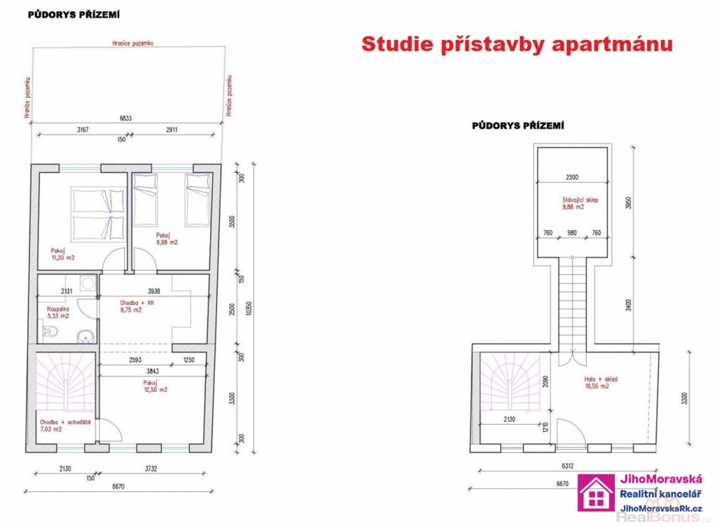 K vinnému sklepu je zpracovaný projekt na rekonstrukci s vybudováním apartmánu ve druhém nadzemním podlaží. Ve fotogalerii najdete půdorys vinného sklípku i projekt rekonstrukce.