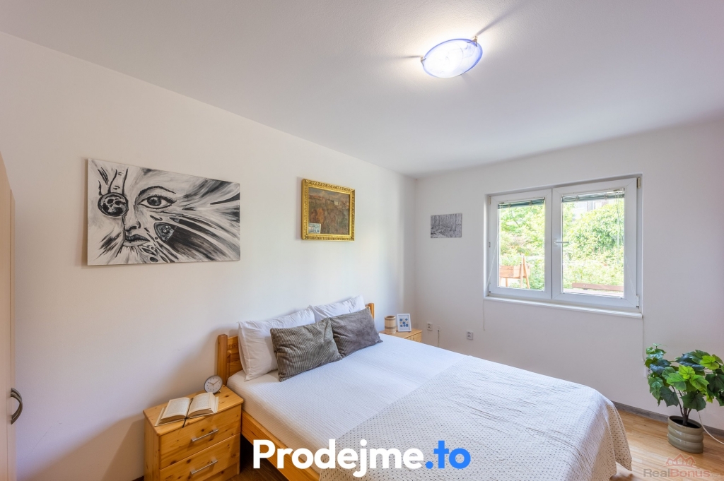 Velkým bonusem je také možnost příjemného posezení na udržované zahradě ve vnitrobloku. Má výměru 81 m2 a je rozdělená na 2 části. Přední se zámkovou dlažbou s venkovním posezením a zadní se záhonky pro pěstování rostlin.