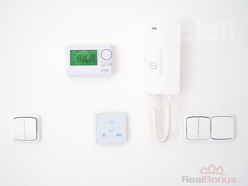 Velkou předností domu je velmi úsporný provoz a energetický štítek B. Vytápění je příjemné podlahové, řešené pomocí tepelného čerpadla. Cirkulaci vzduchu navíc podporuje rekuperace.