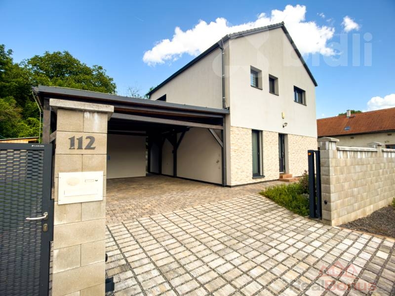 K domu přiléhá kryté parkovací stání pro 2 vozidla a dva zahradní domky. K relaxaci a odpočinku slouží terasa o rozloze 40 m2, která nabízí krásný výhled do zahrady s automatickou závlahou využívající retenční nádrž na dešťovou vodu.