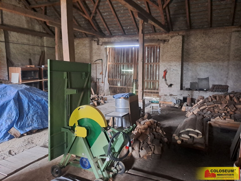 Součástí navazující stavby jsou dvě dílny a prádelna, což poskytuje dostatek prostoru pro technické zázemí nebo hobby využití. Dvůr uzavírá prostorná, zachovalá stodola o výměře přibližně 180 m2, pod níž se nachází sklep vhodný pro uskladnění vína, brambor a podobně (cca 35 m2). Stodola je průjezdná a navazuje na zahradu o velikosti 368 m2 - výměra je dle výpisu z katastru nemovitostí, která má samostatný příjezd z druhé strany pozemku. Dle vyjádření stavebního úřadu je na této části pozemku možné vybudovat další rodinný dům.