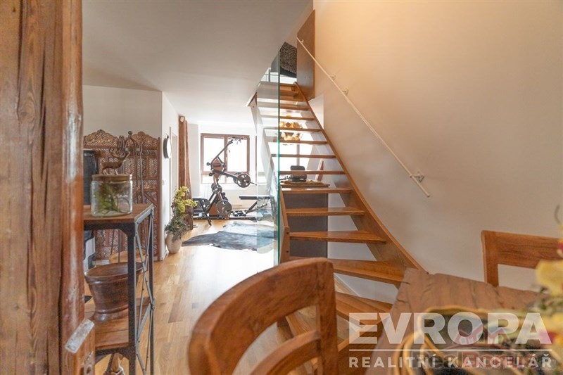 Exkluzivně Vám nabízíme k prodeji unikátní byt 4+kk o celkové podlahové ploše 164 m2. Jedná se o mezonetové bydlení (nová vestavba), kdy dispozičně se v 1. patře nachází vstupní hala, jedna ze tří koupelen s WC, dále pokoj pro hosty / ložnice, jídelní kout, nadstandardně velké zakázkové lůžko mezi trámy a velmi prostorný atypický obývací pokoj propojený s kuchyní, z něhož je přímý výhled na Ještěd. Ve 2. patře se nachází prostorná ložnice s vlastní koupelnou vč. WC a nadstandardně velkou šatnou, dále je zde druhá samostatná ložnice s koupelnou a WC, prací a úklidová komora. Byt se nachází v jedinečné lokalitě na Masarykově ulici ve 3. patře budovy bývalé Obchodní a živnostenské komory (poliklinika) naproti muzeu a lázním, na tzv. Zlatém kříži. Je zde zcela nový výtah s přednostní jízdou na čip do patra, kde se mezonet nachází. Přímo ve dvoře této historické budovy je vlastní nadstandardně široké parkovací stání, které je zabezpečeno proti zaparkování cizího vozidla elektronickým sloupkem na dálkové ovládání. Na patře je též samostatná komora s regály. Byt, který Vám nabízíme, se nachází za rohem na konci chodby bez jakýchkoli sousedů a není tak nikým rušen. Je vybaven exkluzivní kuchyňskou linkou z teakového dřeva se spotřebiči a po dohodě může zůstat kompletně zařízen. Byt je vybaven kamerovým a bezpečnostním systémem. Nízké provozní náklady jsou zde velkou výhodou a umožní tak příjemné okamžiky při užívání si vlastního prostoru a jedinečného místa na bydlení. Byt volný ihned.