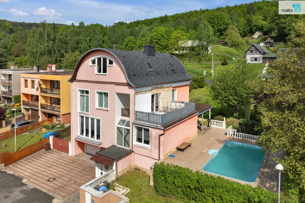 Nemovitost se nachází v klidné části Děčína. Je vhodná pro početnější rodinu, dvě generace nebo jako investice s možností úprav a oddělení jednotek do budoucna. Průchozí dispozice nabízí otevřený a vzdušný prostor s možností přizpůsobení dle potřeb nového majitele. Ev. číslo: 27471. Energetický štítek: E