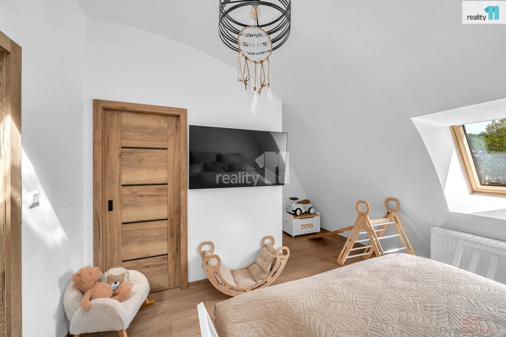 ve 4. NP obytný prostor s kuchyňským koutem, samostatný pokoj a WC.