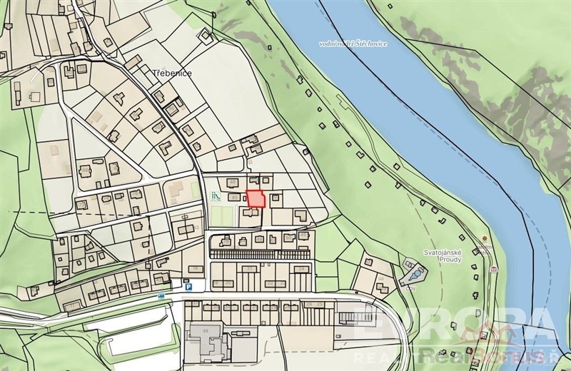Pozemek je zasíťovaný: na hranici pozemku kaplička s elektřinou, kanalizace a voda je na hranici pozemku (potřeba vybudovat přípojky, kapacita je ověřena). Pozemek je stavební a je určen pro individuální obytnou zástavbu. Přes roh pozemku vede stará kanalizace/nezkolaudovaný vodovodní řád, funkční, vše zakresleno v pláncích (viz.foto), nebrání stavbě domu (rovněž zakresleno, viz.foto). Sekundárním zdrojem vody může být studna. Zastavitelnost dle ÚP je max. 30%, dvě nadzemní patra plus podkroví. Pozemek je v centru obce, kousek od dětského hřiště a kurtů, autobusové zastávky, hospůdky U Taterů a vodní nádrže Štěchovice. Třebenice jsou známé především převozem mezi Slapskou a Štěchovickou přehradou (lodní doprava), přístavištěm parníků a naučnou stezkou Svatojánské proudy.
