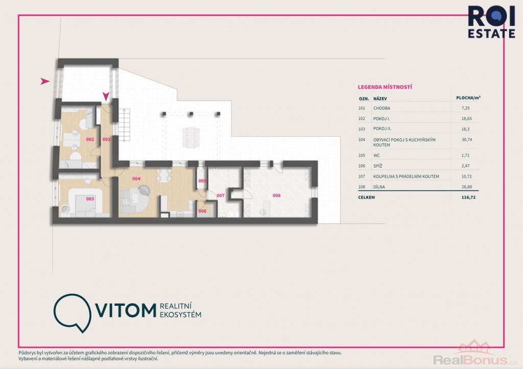 - prostorný obývací pokoj s kuchyňským koutem, který je srdcem domova, s místem na velký jídelní stůl i pohodlnou sedací soupravu,