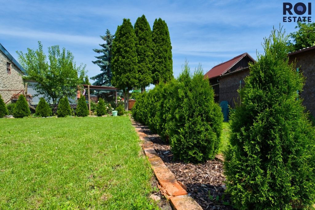 Za domem se pak rozprostírá zahrada o rozloze přes 500 m2, která nabízí dostatek prostoru pro zahradničení, bazén, dětské hřiště nebo jen pohodlnou lehátkovou zónu. K zalévání využijete nádrž na dešťovou vodu. Praktický sklep a dílna navíc poskytnou úložné prostory i zázemí pro koníčky.