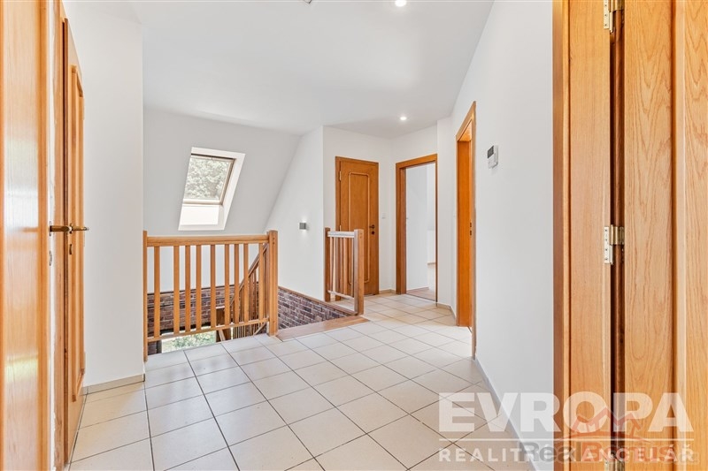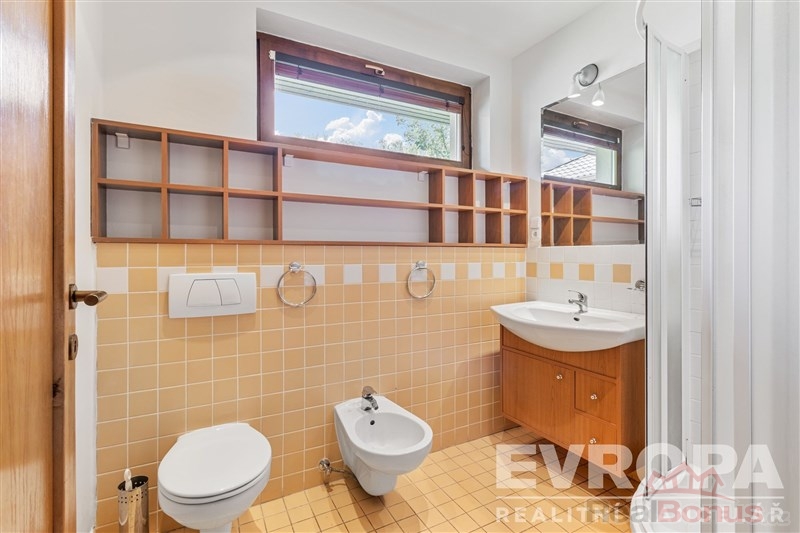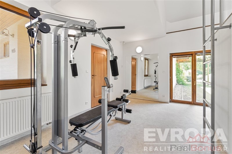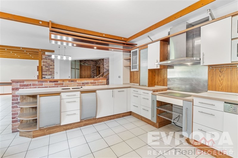 Dům je řešen jako 6+1, což umožňuje komfortní bydlení i pro početnější rodiny. Velkorysý obývací pokoj je spojený s prostornou kuchyní a jídelnou. Velká okna a francouzské dveře zajišťují dostatek denního světla a přímý přístup na terasu a do zahrady z pokoje i z kuchyně. V přízemí je dále pokoj pro hosty, koupelna s WC, šatna, prádelna, posilovna s výstupem na zahradu, finská sauna a herna. Ve druhém nadzemním podlaží jsou čtyři pokoje, samostatné WC, prostorná atypická koupelna s vanou, sprchou a dvěma umývadly, šatna.