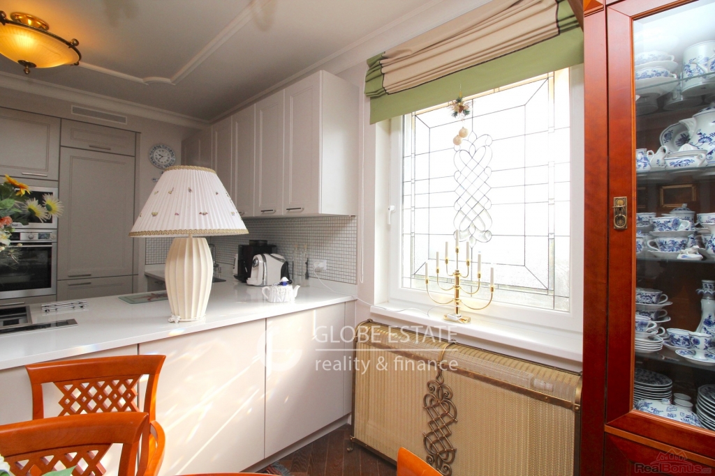 Byt prošel během několika let důkladnou modernizací, která zahrnovala položení dubové podlahy z parket, kvalitní dveře značky Sapeli a kuchyňskou linku Bauformat s pracovní deskou z Technistone a spotřebiči značek AEG a Siemens. Obývací pokoj je ozdoben krbem na biolíh a dvěma unikátními vitrážemi, které byly vyrobeny na zakázku, přičemž jedna z nich je umístěna v okně a druhá ve dveřích do obývacího pokoje. Pod oknem s vitráží se nachází stylové zakrytí na radiátor, který dodává interiéru jedinečný charakter.