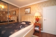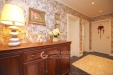 Chodba a pokoje jsou zdobeny luxusními stylovými tapetami, přičemž vzor jedné z tapet se elegantně propisuje na vestavěnou skříň v ložnici, která byla rovněž vyrobena na zakázku.
