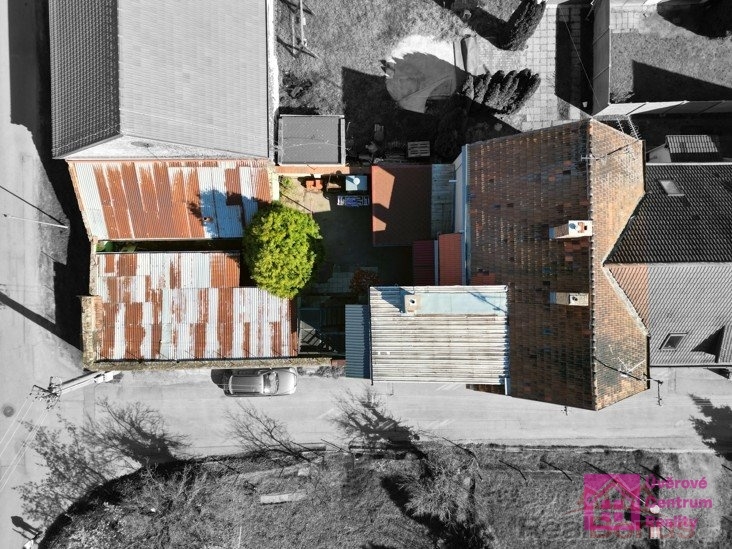 Součástí prodejní ceny je také ? pozemku, na kterém je postavena garáž, skladovací prostory a společný dvůr.