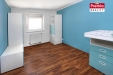 Na oknech jsou zatemňovací rolety. Na zemi je plovoucí podlaha kombinovaná s dlažbou.