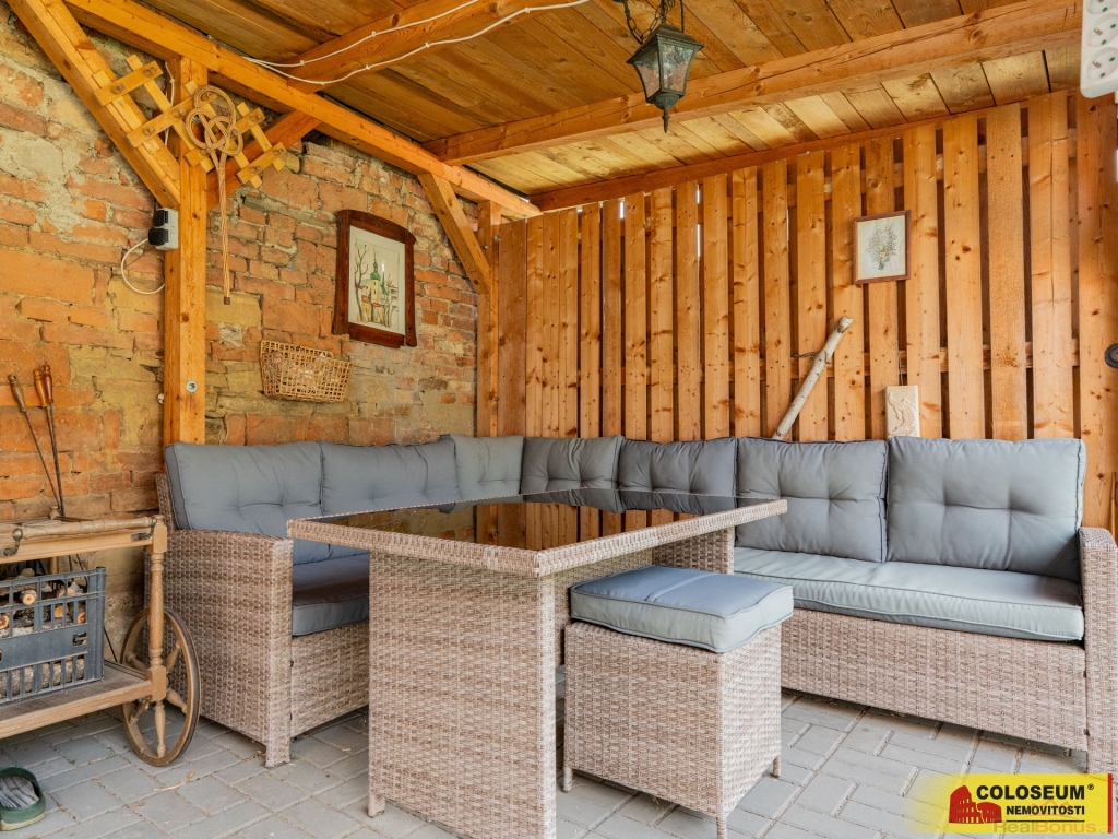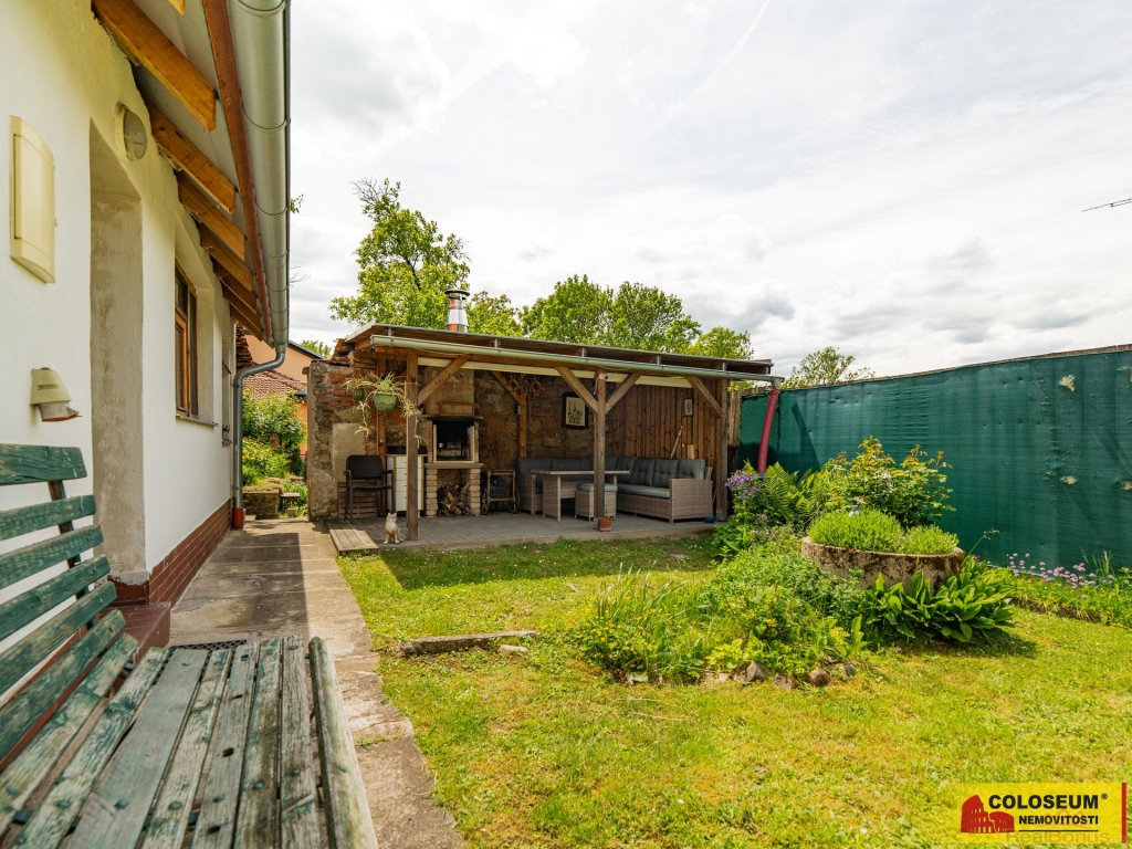 Velkým benefitem je podsklepená dílna, která nabízí i další možnosti využití ? v případě potřeby lze například zbudovat další obytný pokoj. Rovněž půdní vestavba (otevřením střechy do zahrady) je zcela reálná. Na pozemku se nachází zahrada pro pěstování zeleniny, zastřešená pergola s krbem, ke které je z druhé strany prostor pro ukládání nářadí. Před pergolou je dostatečný prostor pro menší bazén, venkovní sprcha a gril.