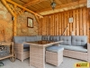 Součástí obytného prostoru je příjemně zařízená kuchyně se sálavým bio krbem, který dotváří útulnou atmosféru a zároveň efektivně vyhřívá místnost. Obytná kuchyň je vybavena lednicí, mobilní elektrickou troubou a dvouplotýnkovým vařičem. Je zde plovoucí podlaha, zatímco v koupelně a chodbě je praktická dlažba. V ložnici je koberec, pod kterým se nachází dřevěné podlahové desky.
