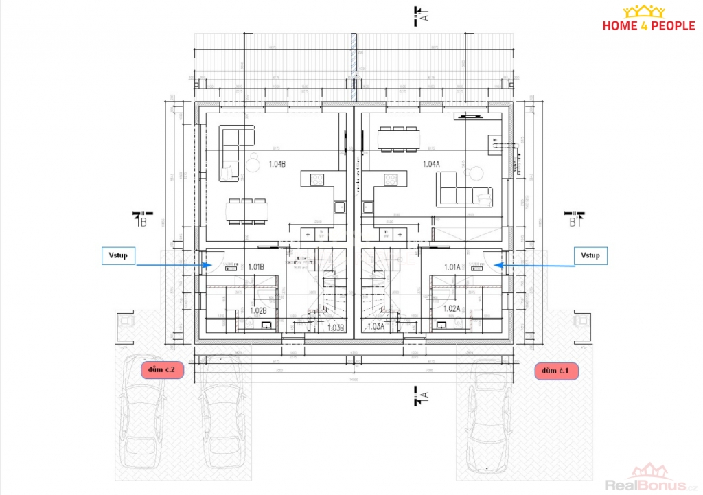 Cena včetně výstavby domu na klíč, pozemku a DPH. VOLNÝ!, Zprostředkujeme Vám výstavbu patrového domu 4+kk o užitné ploše 118 m v provedení na klíč s pozemkem v Kostelci u Zlína. Součástí ceny bude dům, pozemek č.2 o velikosti 488 m (šíře 10,5 m a délka cca 46 m), příprava pozemku pro stavbu, připojení domu na inženýrské sítě, přípojné místo NN, retenční nádrž a parkovací místo o velikosti 36m. Dále zde bude provedena příprava pro následné připojení fotovoltaických panelů. Dům bude realizován jako dvojdomek. Zastavěná plocha jednodomku je 74 m s užitnou plochou 118m. K prodeji budou v tuto chvíli pouze pozemky 2 až 4. Prodej pozemků bez výstavby neumožňujeme. Pozemky jsou již rozděleny na 6 samostatných pozemků a můžete si tak pozemek rezervovat a kupovat, zároveň nechat připravit smlouvu o dílo s položkovým rozpočtem. Pro dům č.1 a 2 je hotový projekt domu, který byl podání na stavební úřad a v tento moment se vyřizuje společné stavební povolení, tím se urychlí jeho výstavba. Zahájení výstavby domu 1 a 2 hodláme zahájit v co nejkratší době. V projektu jsou možné variabilní úpravy dispozice (posuny příček). Patrový dům je ideální pro 5 člennou rodinu s nízkými provozními náklady. Uvedená cena je za pozemek, kompletní stavbu domu v provedení na klíč, projektové dokumentace, vyřízení stavebního povolení, základové desky až po kolaudaci. V uvedené ceně můžete počítat také s finálními povrchovými úpravami exteriéru i interiéru, a to včetně elektroinstalací, sanitárního vybavení s bateriemi, interiérovými dveřmi včetně obložek a vytápění bude řešeno teplovodním podlahovým topením v kombinaci tepelného čerpadla se 180L zásobníkem na teplou vodu. Dle dohody změníme systém vytápění nebo vystavíme komín pro krbové kamna nebo pro využití krbové vložky. Kryté garážové stání spojené s domem nebo venkovní krytou či nekrytou terasu za příplatek. Pro náročnější klienty máme nabídku nadstandardního vybavení chytré domácnosti, klimatizaci, externí žaluzie, rolety, rekuperaci nebo fotovoltaiku. Doba výstavby cca 12-14 měsíců od vydání stavebního povolení a stavbu zahájíme do 10 dnů od jeho vydání. Smlouvu o dílo včetně položkového rozpočtu a vzorovou kupní smlouvu zašleme na vyžádání. Dne 4. září 2024, došlo k podpisu smlouvy o přeložce distribuční soustavy se společností EG.D. a budou zahájeny následné kroky pro změnu vedení a umístění vysokého napětí. Doporučuji prohlídku pozemků a případně našich staveb. Více u makléře. Ev. číslo: 31346. Energetický štítek: A (49 kWh/m2/rok).
