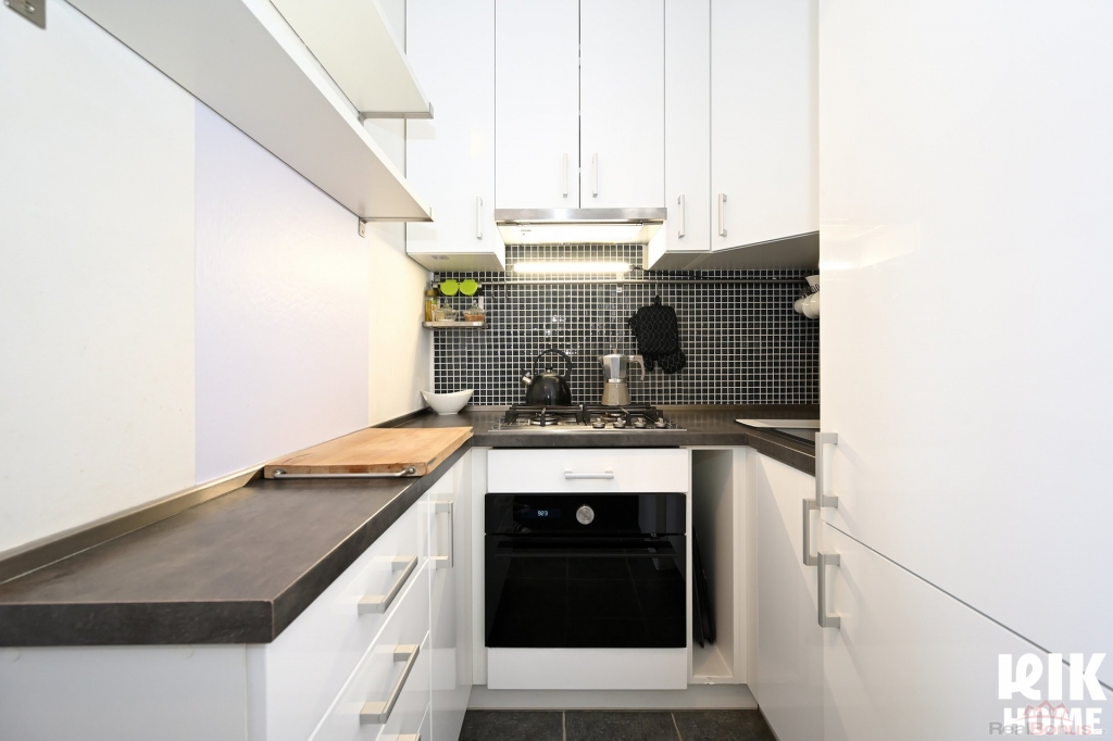 Kuchyň byla navržena s maximálním důrazem na praktičnost a dostatek úložného prostoru. Vestavěná lednice, plynová varná deska, elektrická pečicí trouba a plnohodnotná digestoř zajistí pohodlí a komfort při přípravě vašich oblíbených pokrmů.