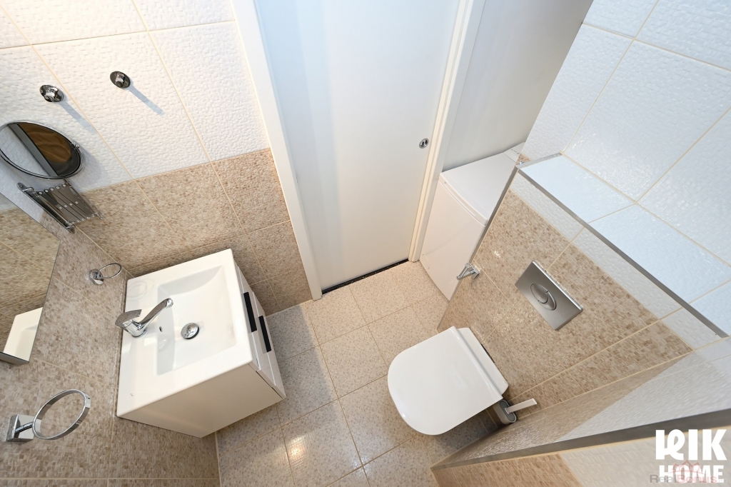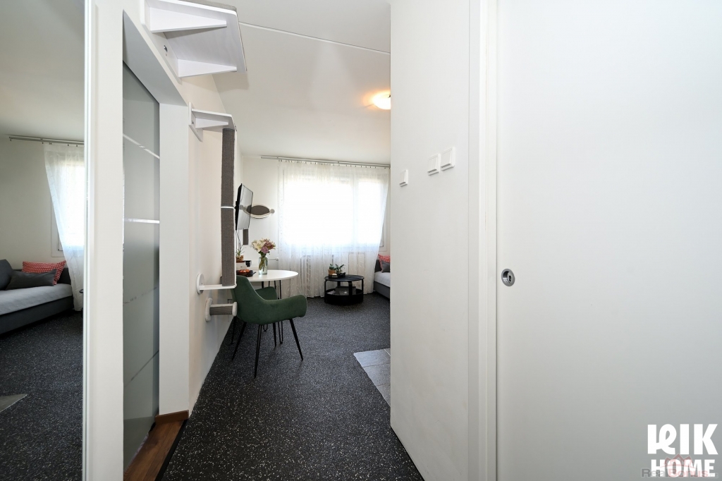 Byt prošel v roce 2025 kompletní a precizní rekonstrukcí s využitím nejkvalitnějších materiálů a osvědčených technologických postupů. Podlaha v obývacím pokoji je naprosto jedinečná díky provedení z černých kamínků zalitých epoxidem ? tato kombinace je mimořádně odolná, snadná na údržbu a navíc pohlcuje hluk.