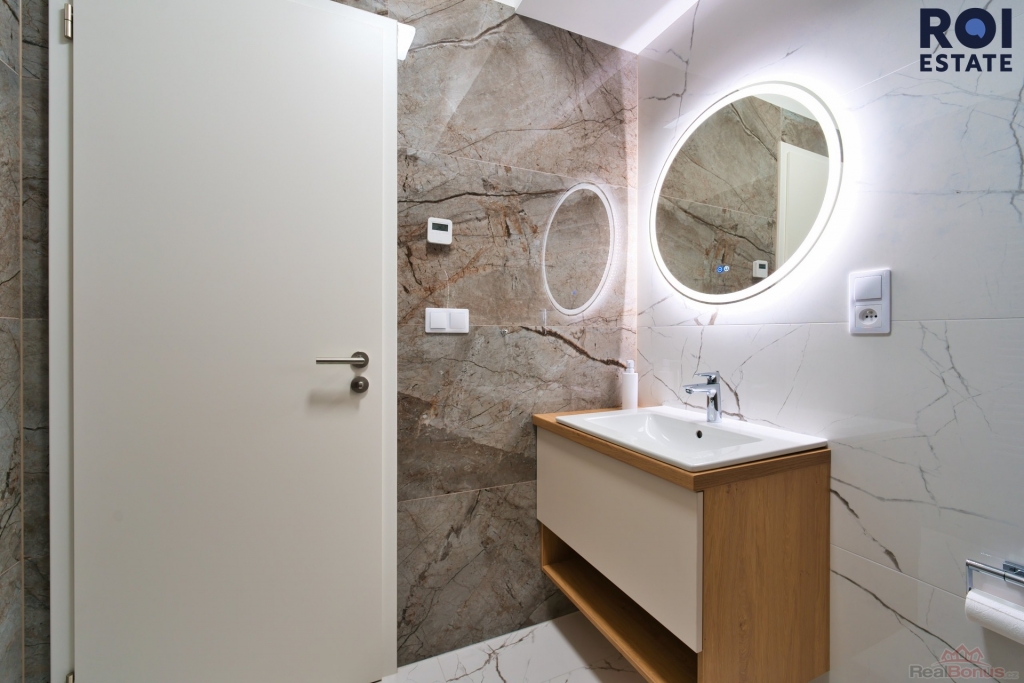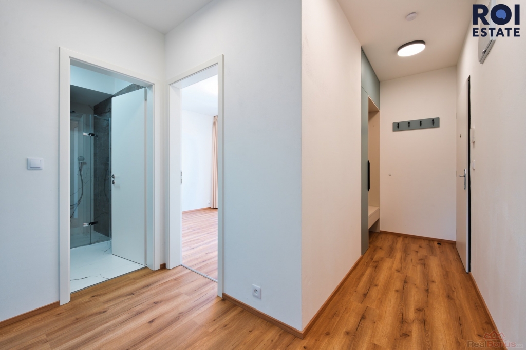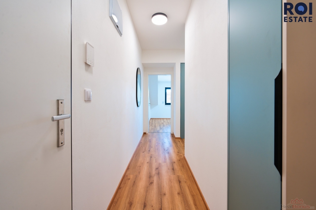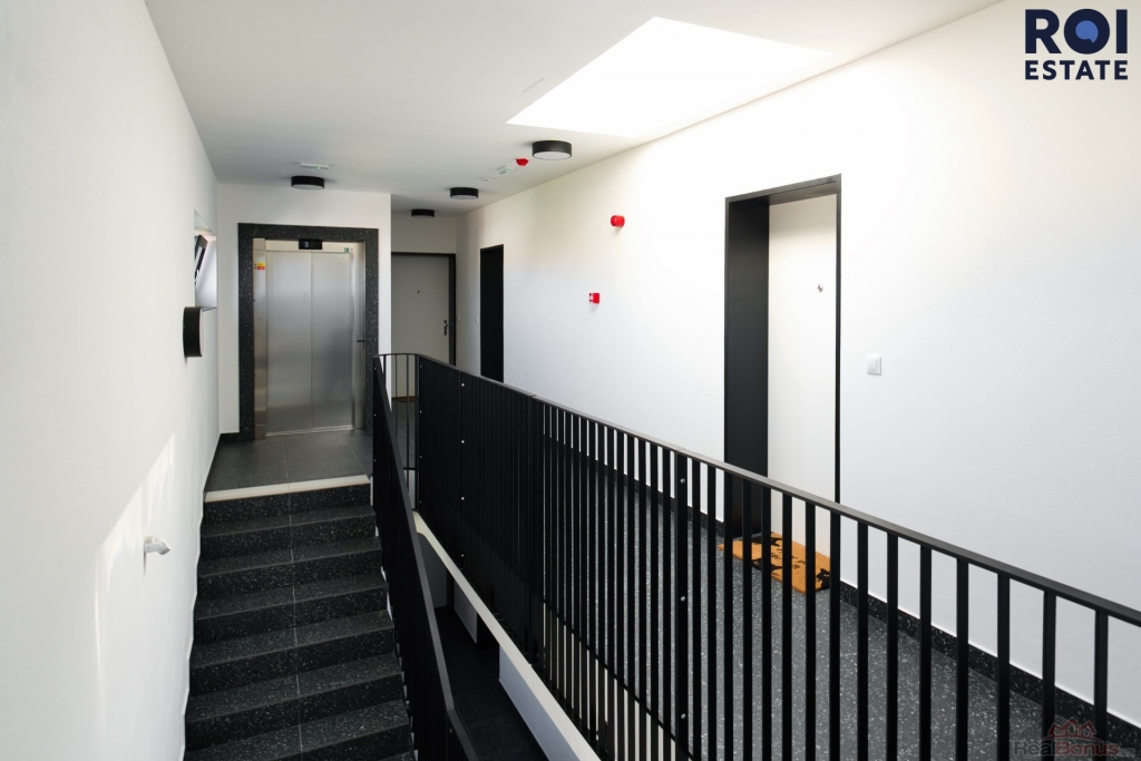Krásné společné prostory, výtah přímo do bytu, velká terasa a garážové parkování přímo u domu zajišťují pohodlné a bezbariérové bydlení. K tomu se připojuje kompletně vybavená kuchyň, vestavěné úložné prostory a možnost nastěhování ihned.