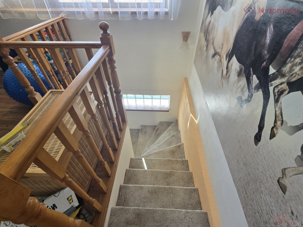 Prodej řadového rodinného domu s průjezdem, který nabízí prostor a soukromí pro větší rodinu, nebo může být zajímavou investiční příležitostí. Dům je v současnosti řešen jako dvougenerační, resp. dvojbytový dům s dvěma nezávislými vchody v rámci dvou nadzemních podlaží. Menší byt o užitné ploše 78 m2 je řešen jako 3+kk , větší byt s užitnou plochou 94 m2 je řešen jako 4+1. Stavba je celopodsklepená, po rozsáhlé rekonstrukci a to včetně vnitřních rozvodů (el. měď, voda, odpady, plast), výměně hromosvodu, výměně oken (plastová s trojskly), zateplení půdního prostoru a prostoru nad průjezdem (foukaná vata) a revitalizaci fasády (silikonový nátěr). Dům je napojen na obecní vodovod, plyn , el. 220/380, odpady jsou svedeny do septiku. Vytápění je řešeno ústředním rozvodem, napojeným pro každý byt na samostatný plynový kotel . Kotle zajišťují zároveň ohřev TUV. Každý byt má svůj podružný měřič elektřiny, plynu a vody. Za domem se nachází udržovaná, mírně svažitá zahrada o výměře 439 m2. Parkovací stání před domem. Dopravní dostupnost je velmi dobrá. Bydlení se nachází v dostupnosti cca 5 km od nájezdu na D1, příměstská autobusová doprava zajíždí do obce. Bez poplatku zajistíme profesionální návrh financování včetně jeho expresní realizace.