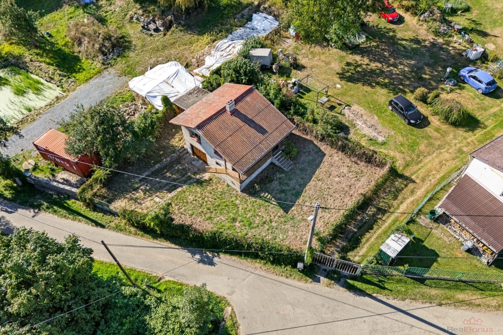 Chata nabízí prostorný obývací pokoj s kuchyňským koutem, který je srdcem společenského života, útulnou ložnici, průchozí skladovou komoru propojenou s garáží, samostatné WC a koupelnu, což zajišťuje pohodlí pro každodenní užívání i víkendovou rekreaci. Dům je kompletně podsklepený a v suterénu se nachází garáž s technickou místností, kde je umístěna vodárna a schodiště propojující s hlavní obytnou částí domu.