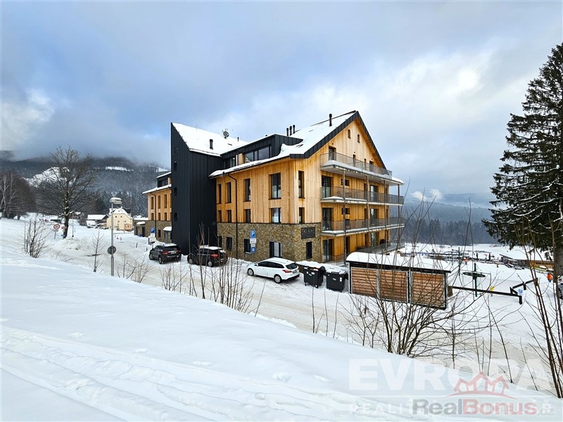 Prodej krásného apartmánu, v novostavbě moderního apartmánového domu Ski&Bike, s ukončením výstavby v 08/2023. Stavební projekt byl nominován na Projekt Roku 2021. Apartmán a společné prostory jsou vybaveny vysokými standardy. Energetická náročnost budovy B velmi úsporná.