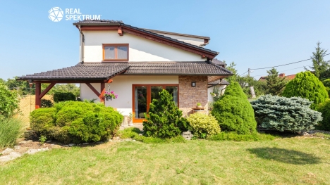 Dispozičně dům nabízí promyšlené a prostorné uspořádání. V přízemí se nachází prostorná vstupní hala, velkorysý obývací pokoj se vstupem na terasu a zahradu, samostatné WC, technická místnost a prostorná garáž. V patře navazuje obytná hala, tři velké ložnice, šatna a koupelna s WC. V interiéru byly použity nadstandardní materiály s důrazem na styl a funkčnost. O tepelný komfort se stará moderní tepelné čerpadlo (země/vzduch), které zajišťuje efektivní a úsporný provoz celého domu.