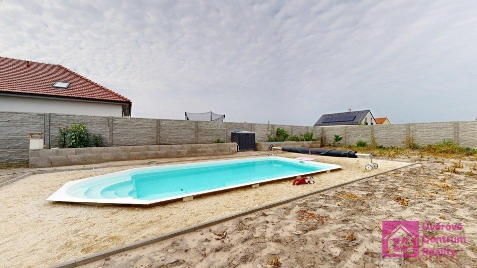 Na zahradě za domem se nachází bazén se slanou vodou. Okolí bazénu a zahradu si můžete doladit dle vlastních představ. Celý pozemek je oplocen.