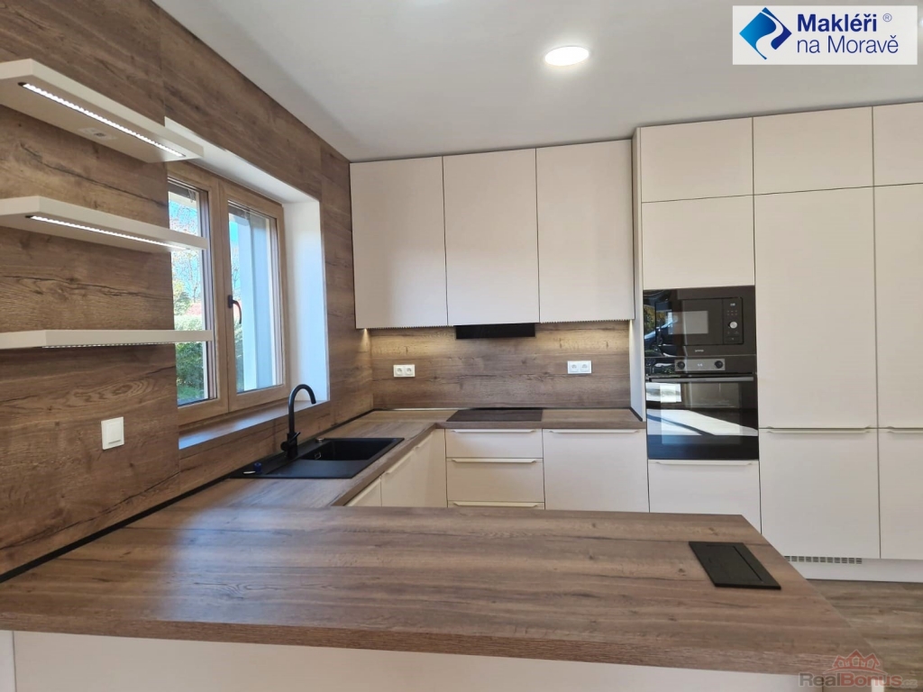 Vybavení kuchyně je v nadstandardním provedení s komfortní prostornou rohovou kuch. linkou a s ostrůvkem se spoustou úložného prostoru. Spotřebiče zn. Gorenje jsou rovněž zárukou kvality.