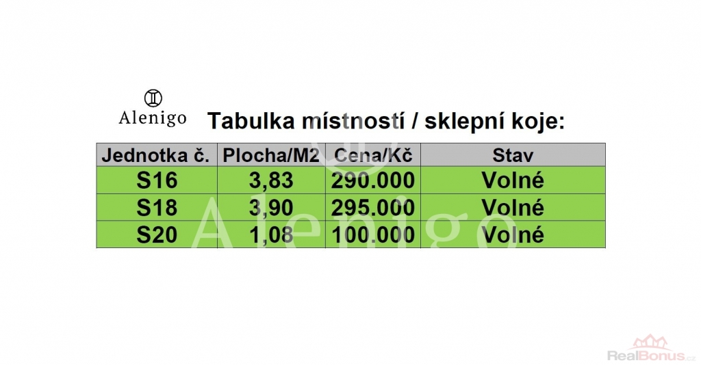 Ceník dalších jednotlivých nebytových prostor na foto v inzerátu.