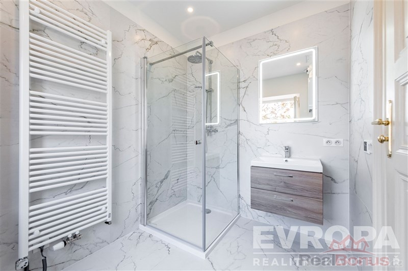 Kompletní rekonstrukce bytu dala vyniknout kráse původních architektonických prvků jako jsou dvoukřídlé interiérové dveře, parkety, velká špaletová okna a ostatní dobové doplňky. Velkoformátová dlažba z italského bílého mramoru, křišťálové lustry a nádherné vstupní dveře podtrhují výjimečnost a krásu tohoto bytu. Teplo a ohřev vody zajišťuje nový plynový kotel. V celém bytě je zavedena kabelová, internetová a telefonní síť. Zcela nová je elektroinstalace, koupelna, WC a rozvod topení. Byt má zcela nově zařízený interiér s moderní kuchyní ,na požádání dodáme ledničku a pračku.