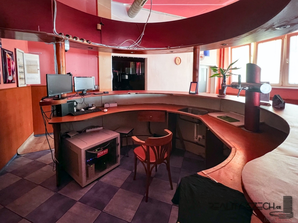 Nabízíme ke komerčnímu pronájmu rozlehlý dvoupodlažní nebytový prostor s možností využití jako restaurace, společenský klub s barem, herna, výrobní prostor, lahůdky, kanceláře, ordinace, prodejna atd. Prostory disponují rozsáhlými prosklenými výlohami. Je možné převzít včetně gastronomického pultu (vč. narážecího zařízení), stolů a židlí, billiardu a stolního fotbalu.