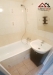 Koupelna je po dřívější rekonstrukci s umyvadlem, skřínkou, zrcadlem, baterií.
