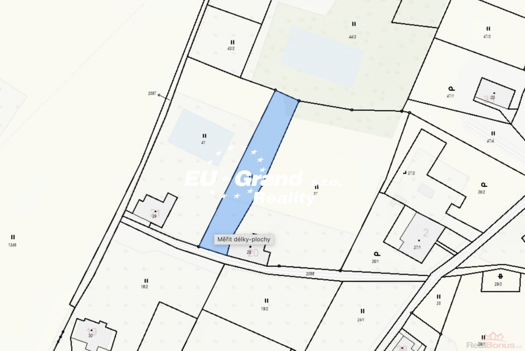 Pozemek má šířku cca 14 m a délku cca 82 m, díky čemuž je vhodný pro výstavbu menší rekreační nemovitosti či útulného rodinného domu.