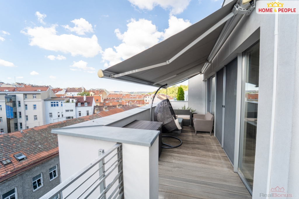 Prodej přímý majitel - Kupující neplatí provizi, Nabízíme k prodeji výjimečný mezonetový byt 4+kk o podlahové ploše 139 m, nacházející se v 6. a 7. nadzemním podlaží prestižní Rezidence Prokopova. K bytu náleží rozsáhlé venkovní plochy terasy a balkony o celkové výměře 97 m, včetně exkluzivní střešní terasy 59 m v 8. NP s dechberoucím panoramatickým výhledem na celou Prahu a Pražský hrad.